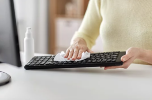 Sanitize Peripherals: Disinfect your mouse, phone, and desk phone, as these are often hotbeds for bacteria, especially